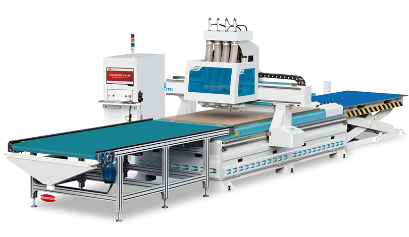 前沿的科技支撐規(guī)?;a(chǎn),讓企業(yè)始終處于高效率運(yùn)作當(dāng)中。 一次性上下料作業(yè)滿足開料、銑形、垂直鉆孔工藝,大幅度降低 人工使用量,提高生產(chǎn)80%工作效率,數(shù)控開料連線未來家居生 產(chǎn)工藝的使用方向。